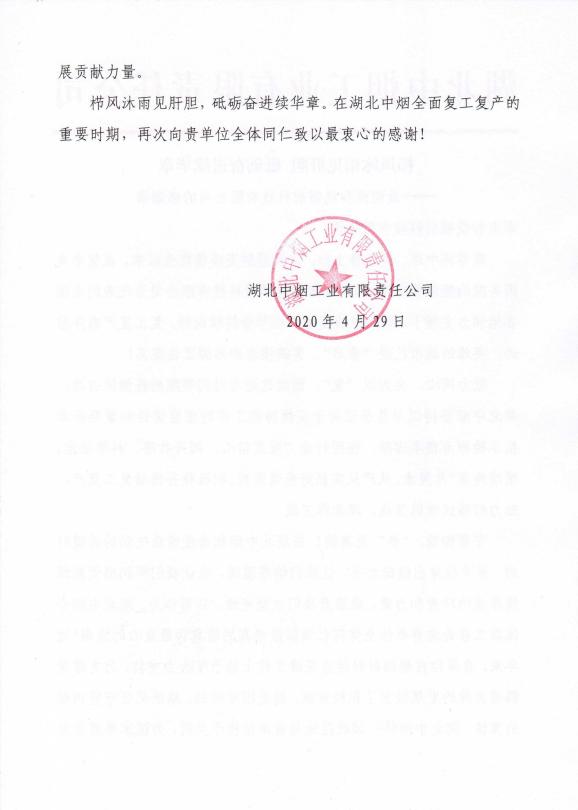 向湖北愛心捐贈感謝信